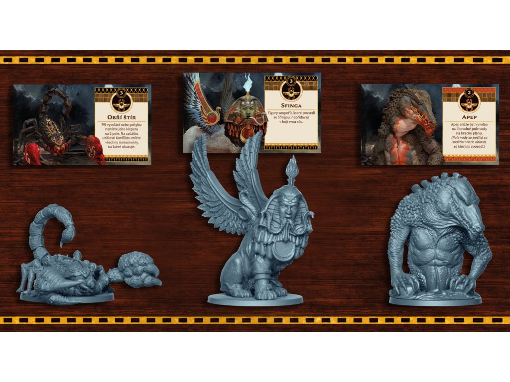 80 plastových figur (5 bohů, 30 válečníků, 15 Strážců, 30 velbloudů) o 20 plastových podstavců o 5 plastových