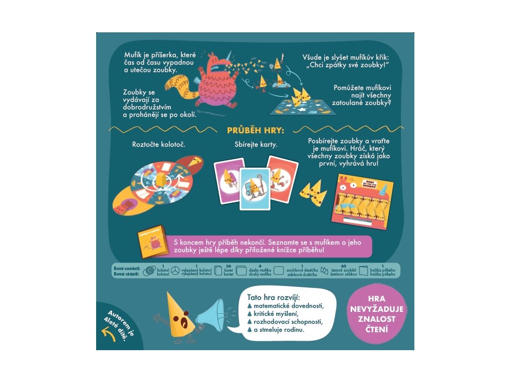 S koncem hry příběh nekončí. Seznamte se s mufíkem a jeho zoubky ještě lépe díky přiložené knížce příběhu!