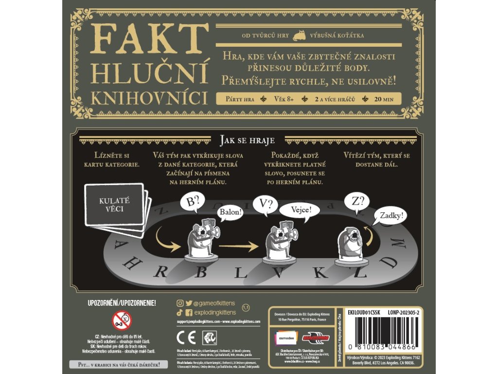Další bláznivá párty hra od tvůrců hry Výbušná koťátka - to jsou Fakt hluční knihovníci! Hra, ve které vám vaše zbytečné znalosti přinesou důležité body. Přemýšlejte rychle, ne usilovně!O co vlastně v této hře jde?