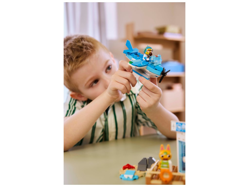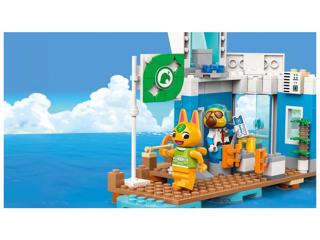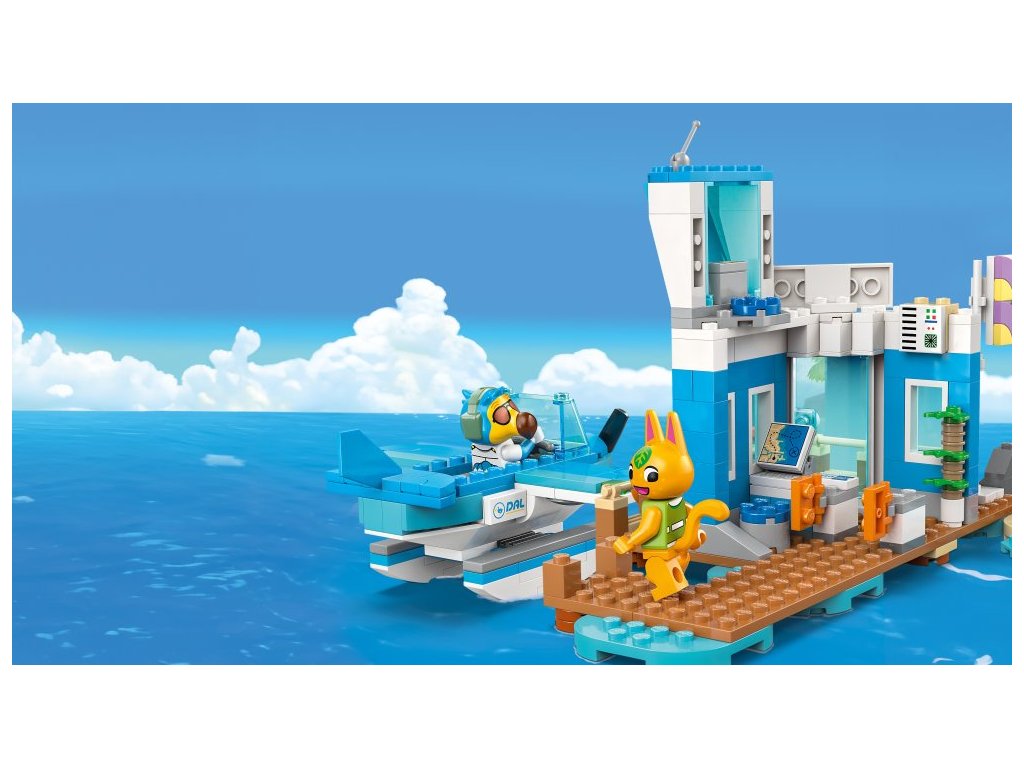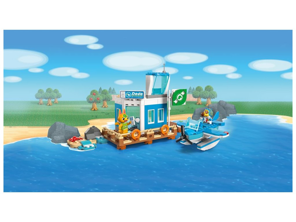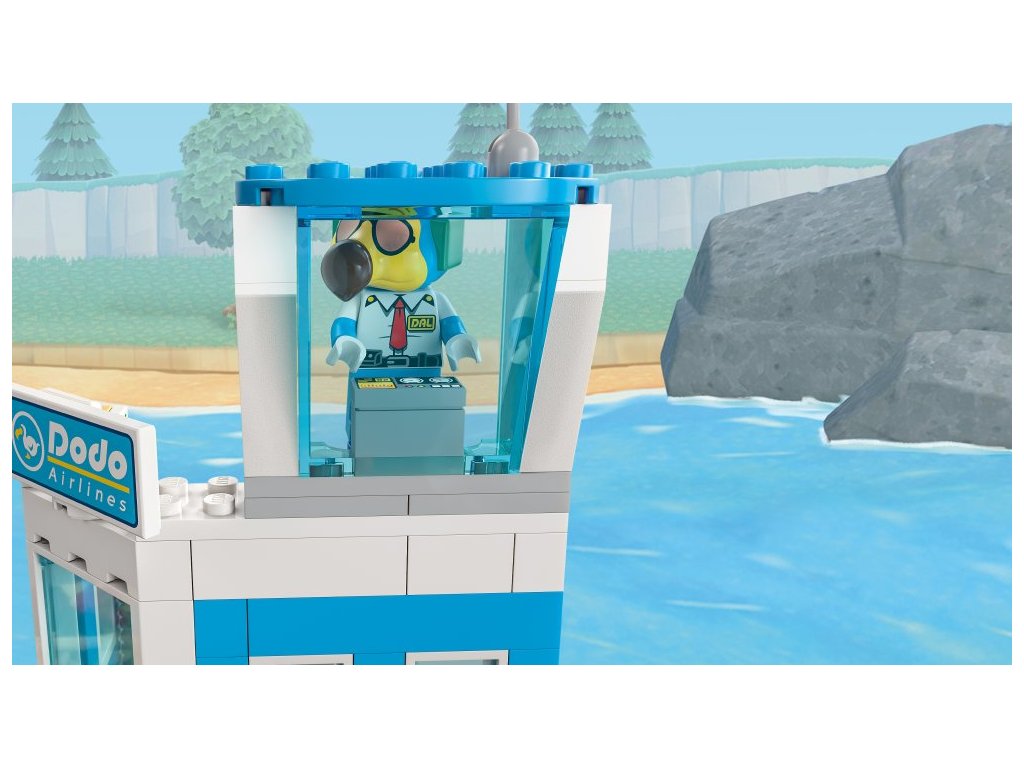 Tato funkcemi nabitá stavebnice dětem umožní přehrávat si vlastní příběhy ve známém prostředí Animal Crossing. Stejně jako ve videohře má letiště molo vedoucí na pláž, kontrolní věž a otevírací oranžovou bránu. Jakmile kluci a holky postaví model letadla, mohou cestující s letenkou nastoupit na palubu. Děti roztočí vrtuli hydroplánu a vydají se s minifigurkami pilota Wilbura a Tangy na nový ostrov.