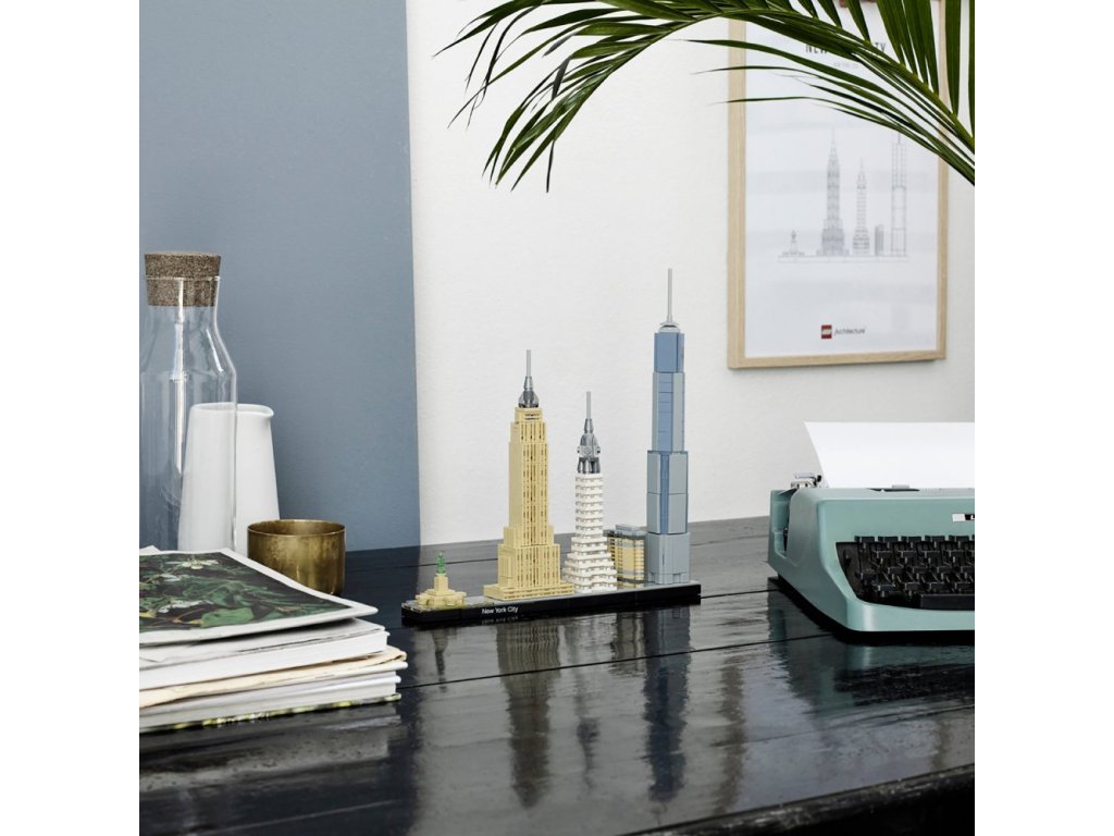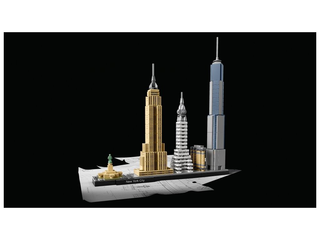 Oslav architektonickou rozmanitost města New York díky tomuto detailnímu LEGO® modelu z kostek. Panoramatická sbírka LEGO® Architecture obsahuje modely, které jsou v hodné k vystavení doma nebo v kanceláři, a byla vyvinuta pro všechny, kdo mají rádi cestování, architekturu, historii a design. Každá sada má své měřítko, aby byla přesnou verzí každé z budov v menší velikosti, a má barvy, jako ve skutečnosti. Tato sada obsahuje budovu Flatiron, budovu Chrysler, Empire State Building, věž světového obchodního centra a sochu Svobody, a její součástí je také ozdobná cedulka s nápisem „New York“.