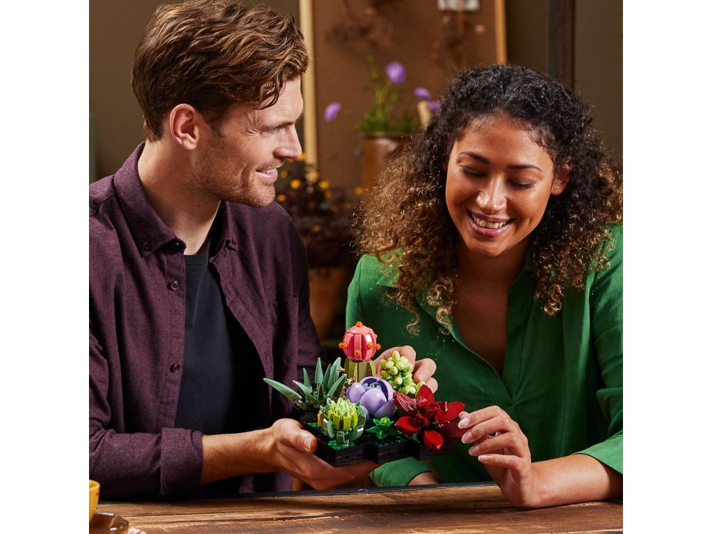 Sukulenty jsou často vstupenkou do světa pokojových rostlin, které zároveň v interiéru plní estetický účel. Nyní si můžete se stavebnicí LEGO® Sukulenty (10309) vychutnat jedinečný stavitelský projekt pro dospělé a postavit si elegantní výstavní model, který obohatí váš domov. Ponořte se do soustředěného stavění 9 různých detailně zpracovaných sukulentů inspirovaných skutečnými sukulentními rostlinami a pochlubte se dokonalým výsledkem své práce.