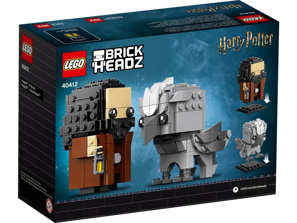 Stavebnice LEGO® Hagrid™ a Klofan (40412) potěší každého fanouška filmů o Harrym Potterovi™ a sběratele modelů BrickHeadz™. Figurku Hagrida si nelze splést s ničím jiným: má bujné černé vlasy, v jedné ruce drží lucernu a v druhé svůj oblíbený růžový deštník. Model Klofana má výrazné bílé peří, které mu roste od temene hlavy až po zobák. Obě sběratelské figurky stojí na robustních stojanech, takže si s nimi lze hrát nebo je používat jako ozdoby.