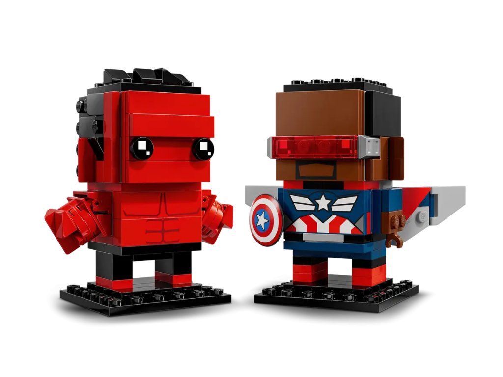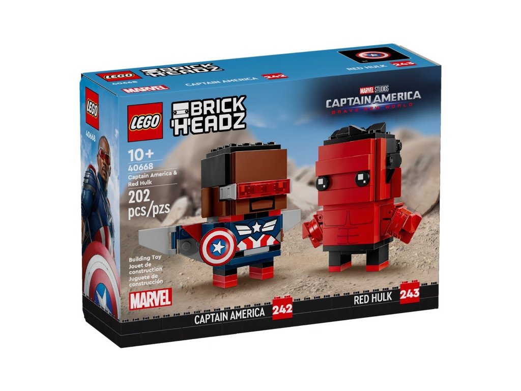 - Postavy superhrdinů pro děti – Kluci a holky od 10 let a fanoušci filmu Captain America: Nový svět od studia Marvel Studios vdechnou figurkám Kapitána Ameriky a Červeného Hulka život v barevném stylu BrickHeadz™