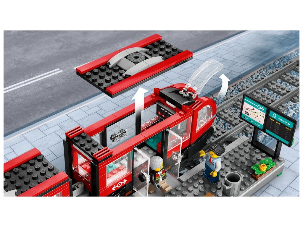 - Model tramvaje – Fanoušci trolejbusů a vlaků si zamilují stavebnici LEGO® City Tramvaj a zastávka v centru města pro kluky a holky od 7 let