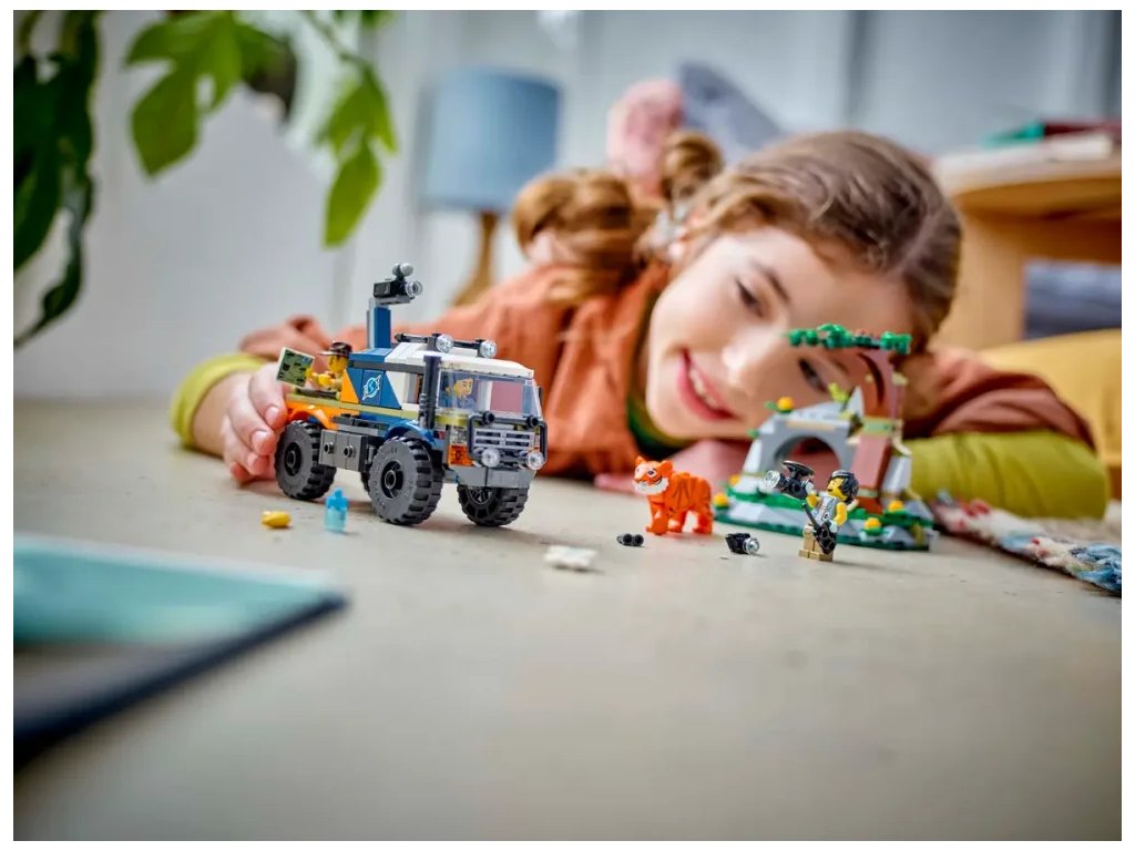 - Stavebnice pro nápadité hraní – Děti si užijí zábavné stavění, pak se připojí k průzkumníkovi v terénním vozu a vydají se na nápaditá dobrodružství na safari s tygrem
