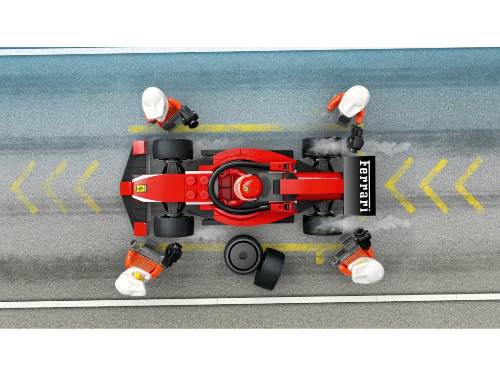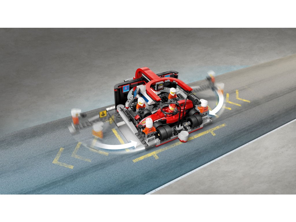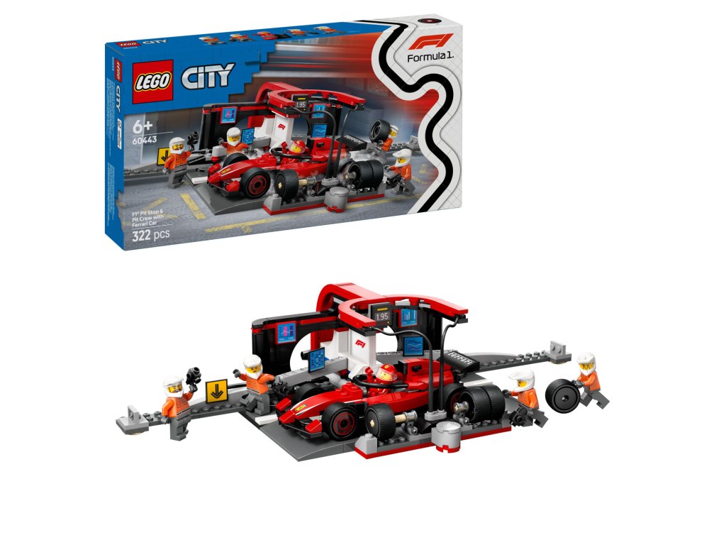 - Co najdete v krabici? – Vše, co děti potřebují k sestavení zastávky v boxech F1® a vozu Ferrari a minifigurky řidiče a 4 členů personálu