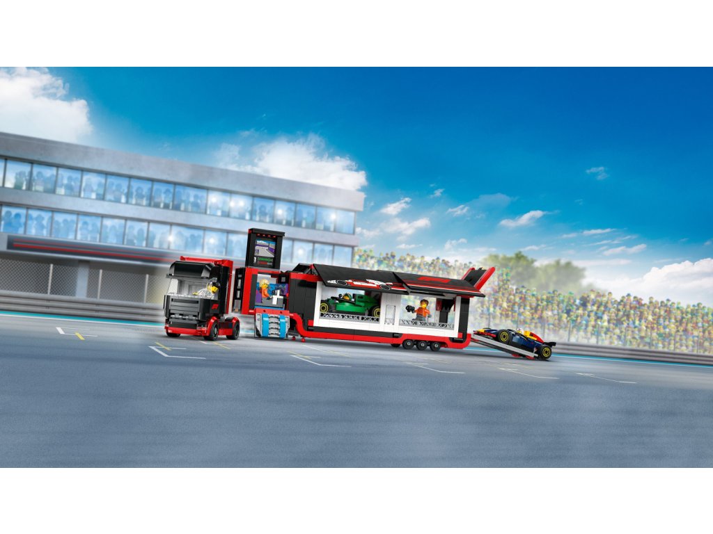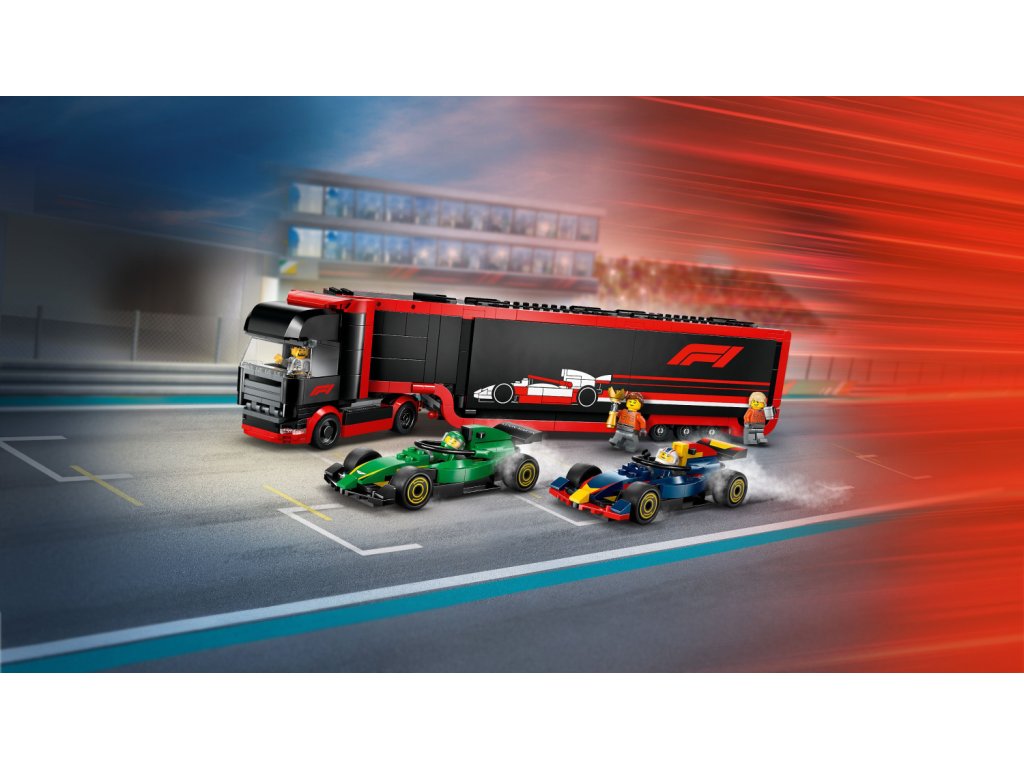 - Stavebnice LEGO® F1® s přepravním kamionem – Malí fanoušci Formule 1 si zamilují tuto prémiovou stavebnici LEGO City Kamion F1® s vozy F1® RB20 a AMR24 pro děti od 8 let