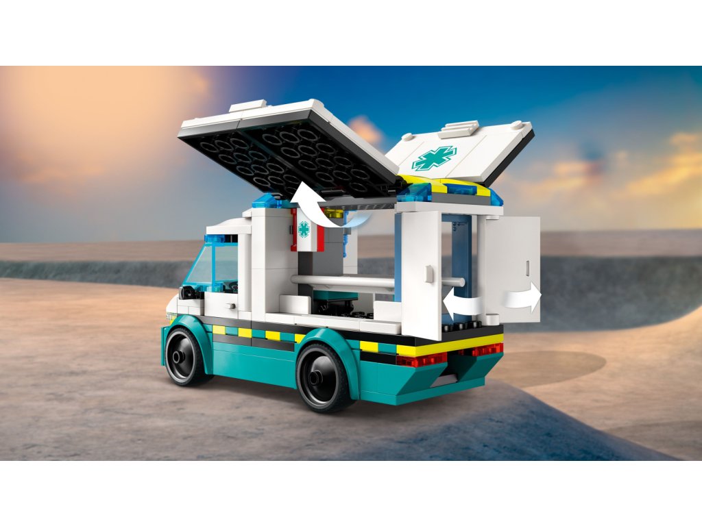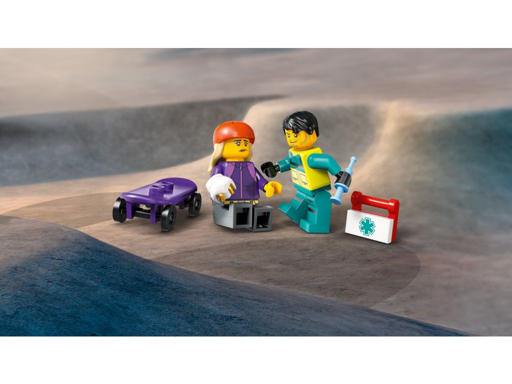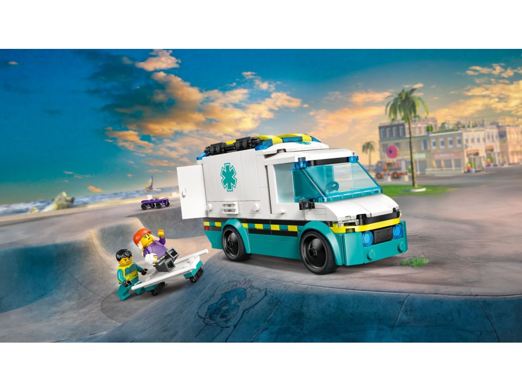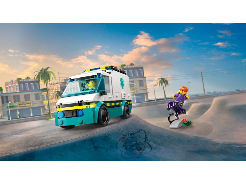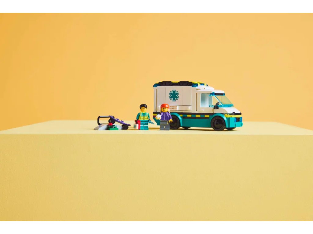 Děti od 5 let si užijí akční záchranné mise se stavebnicí LEGO® City (60451) Sanitka. Malí záchranáři sklopí boční panely a otevřou zadní dveře, aby se snadno dostaly k nosítkům a zdravotnickému vybavení, včetně injekční stříkačky, obvazu a zdravotnické brašně. Součástí stavebnice je také skateboard a skate rampa a minifigurka skateboardisty a záchranářky pro zábavné hraní a vyprávění příběhů.