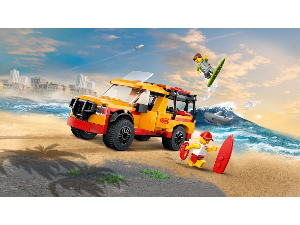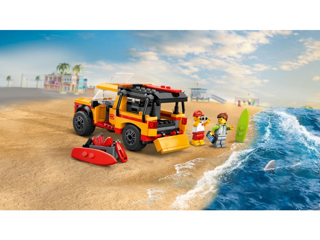 - Stavebnice vozu pro plavčíka – Děti se ponoří do akčních dobrodružství na mořském pobřeží se stavebnicí LEGO® City Záchranné auto pro plavčíka pro kluky a holky od 6 let