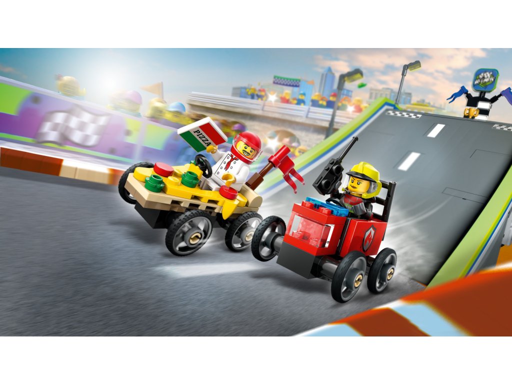 - Závodní stavebnice s minikárami – Potěšte svého malého milovníka závodů od 5 let stavebnicí LEGO® City Závodní balíček: Rozvoz pizzy vs. hasičské auto