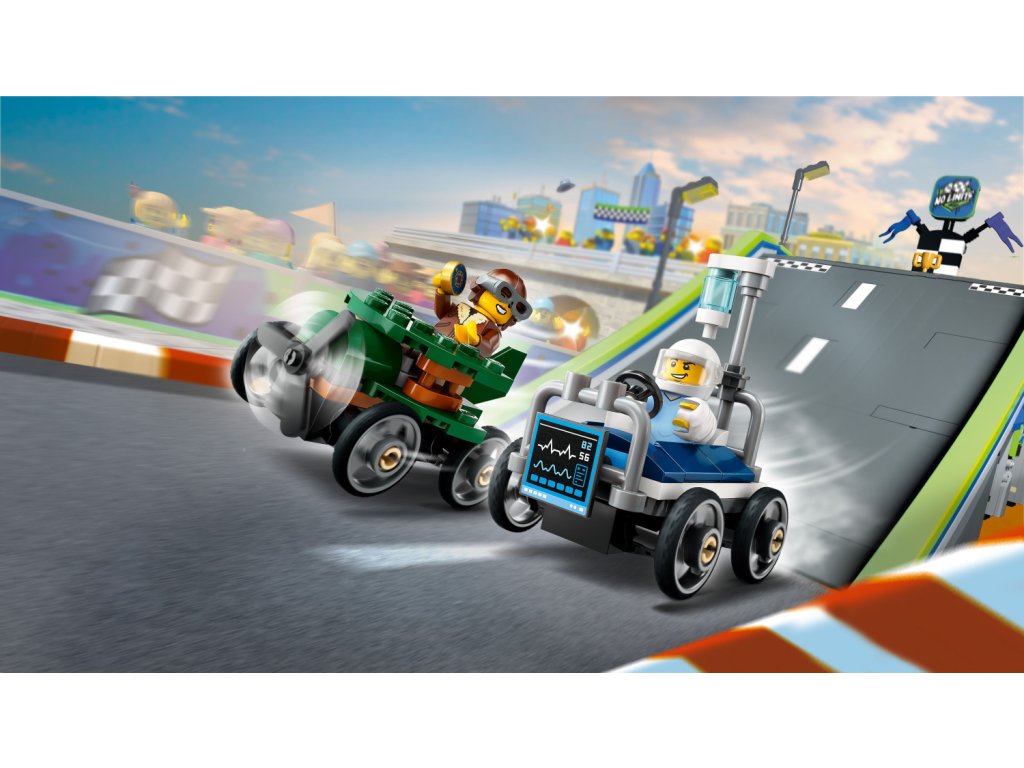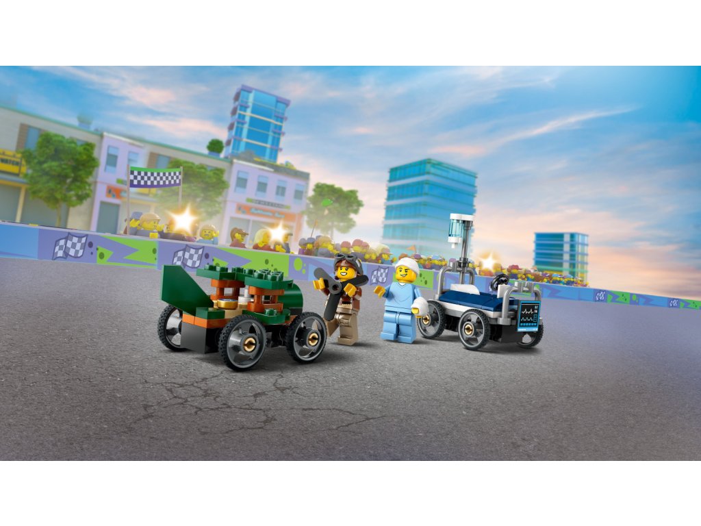 - Nápadité hraní – Dětí usadí minifigurky LEGO® řidičů do kokpitů minikár a vychutnají si hodiny zábavného závodění a vyprávění