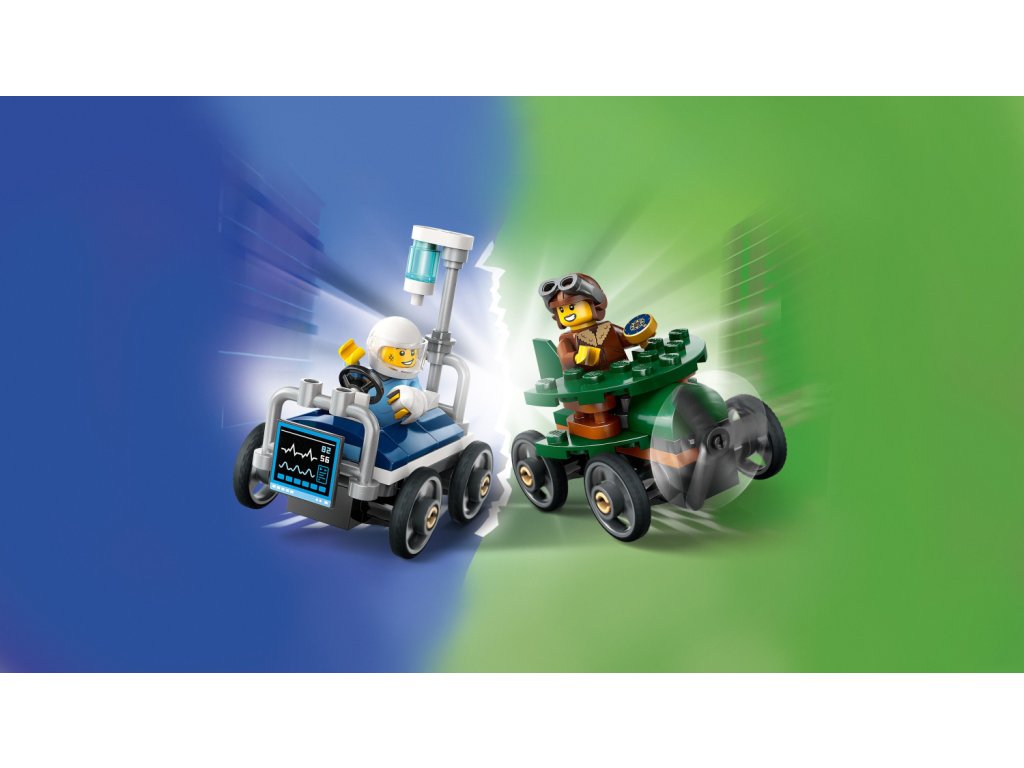 - Stavebnice závodních minikár – Překvapte malého milovníka závodů od 5 let stavebnicí LEGO® City Závodní balíček: Letadlo vs. nemocniční lůžko