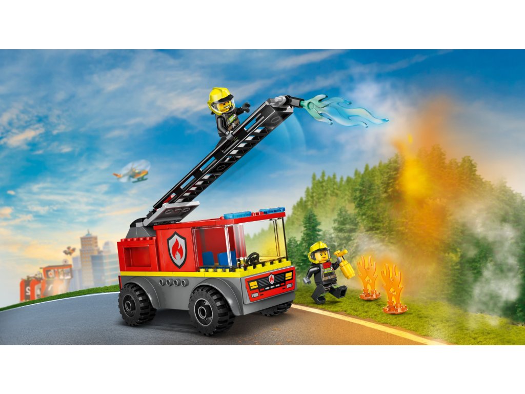 Stavebnice z řady LEGO City Hasiči přináší hračky plné úžasných funkcí pro neomezené hraní na zemi, ve vzduchu i na vodě. Děti můžou stavebnici Hasičské auto s žebříkem kombinovat s dalšími stavebnicemi z řady LEGO City (prodávají se samostatně) a užívat si ještě úžasnější dobrodružství!