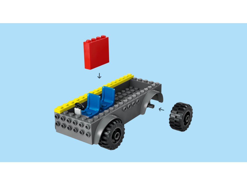 Tato snadno sestavitelná stavebnice obsahuje začátečnickou kostku LEGO a obrázkový návod, který vás provede stavěním – nebo se můžete se svým malým hrdinou vydat na napínavou stavitelskou cestu s 3D návodem v aplikaci LEGO Builder. Umožní jim prozkoumávat a ukládat si stavebnice, sledovat svůj postup stavění a přibližovat, otáčet a prohlížet si modely ze všech úhlů, zatímco na nich pracují.