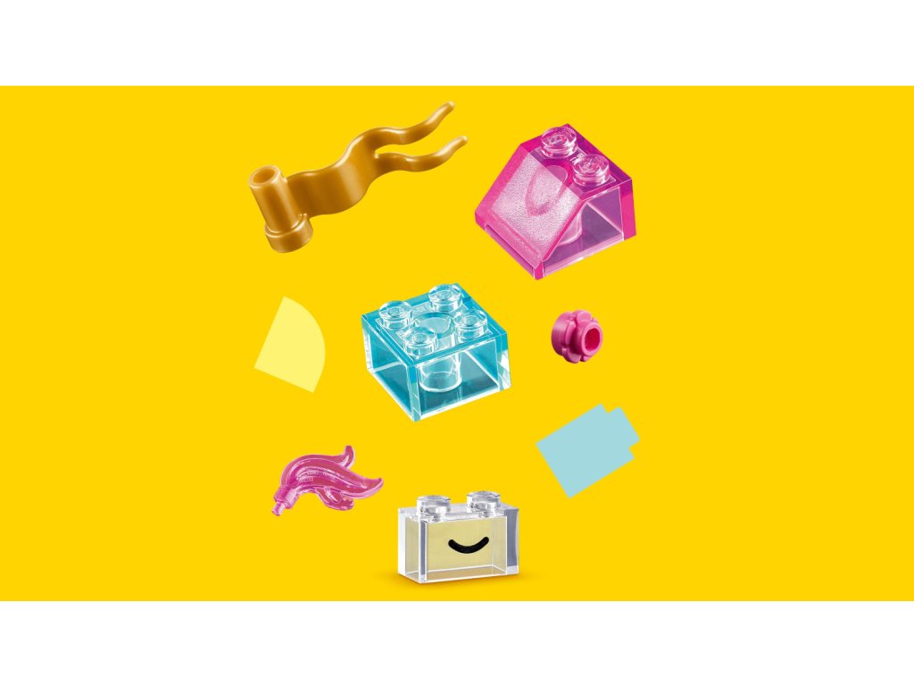 Děti si nejdřív postaví model srdce, ducha, mořské víly, hvězdy a jednorožce. Jejich stavitelské sebevědomí poroste pak se pustí do stavění vesmírné lodi, mraku, komety, ptáka, narvala, zmrzliny a květiny. Tvořivou zábavu si užijí i při stavění velkého hradu a draka. Průsvitné kostky, dílky s očima a ústy a závěsné dílky na vystavení dodají dětským výtvorům ještě více kouzla a kreativní zábavy.