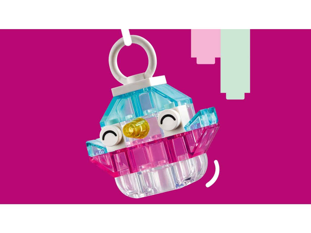 - Kreativní stavebnice – Průsvitné kostky, dílky o očima a ústy a dílky na zavěšení dodají dětským výtvorům jiskru a malí stavitelé si s nimi užijí spoustu zábavy