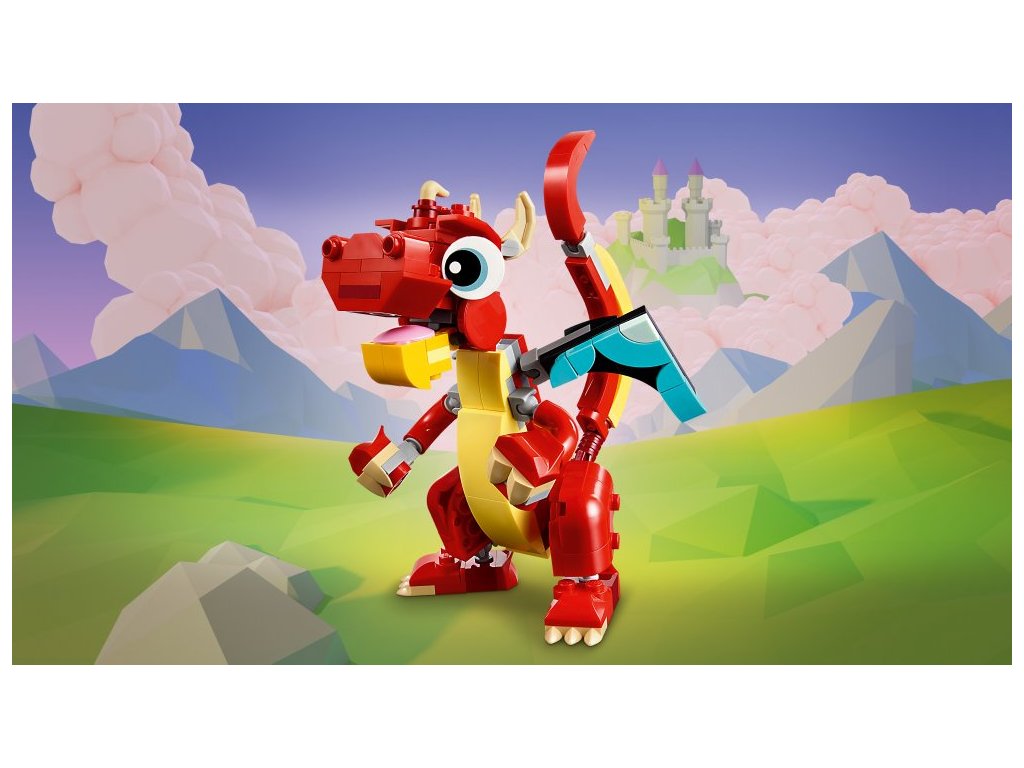 - 3 kouzelná zvířata v jedné stavebnici – Děti od 6 let se se stavebnicí LEGO® Creator 3 v 1 Červený drak ponoří do stavění a přestavování 3 pestrobarevných modelů z jedné sady kostek