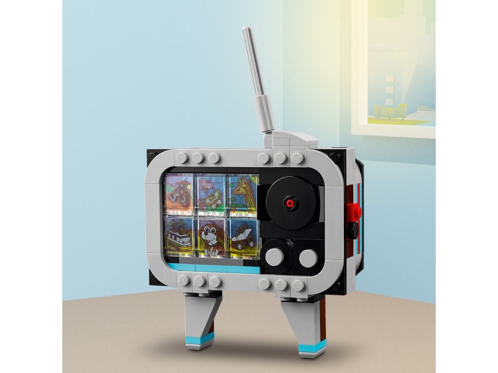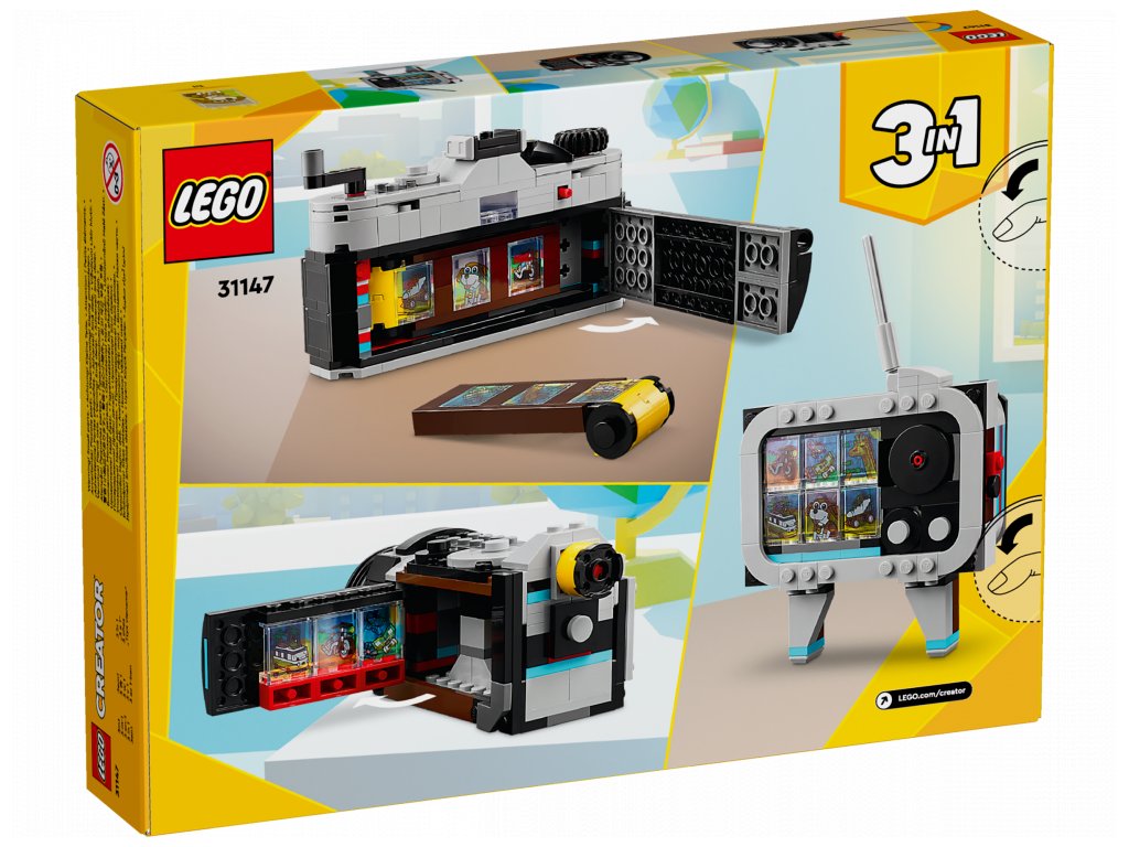 Tato stavebnice LEGO® Creator 3 v 1 dětem přináší možnost postavit si hned 3 různé retro modely z jedné sady kostek. Postaví si model fotoaparátu, který pak přestaví na retro kameru a tu zase přeskládají na retro televizi s anténou. Všechny 3 modely se budou skvěle vyjímat na výstavce v dětském pokoji.