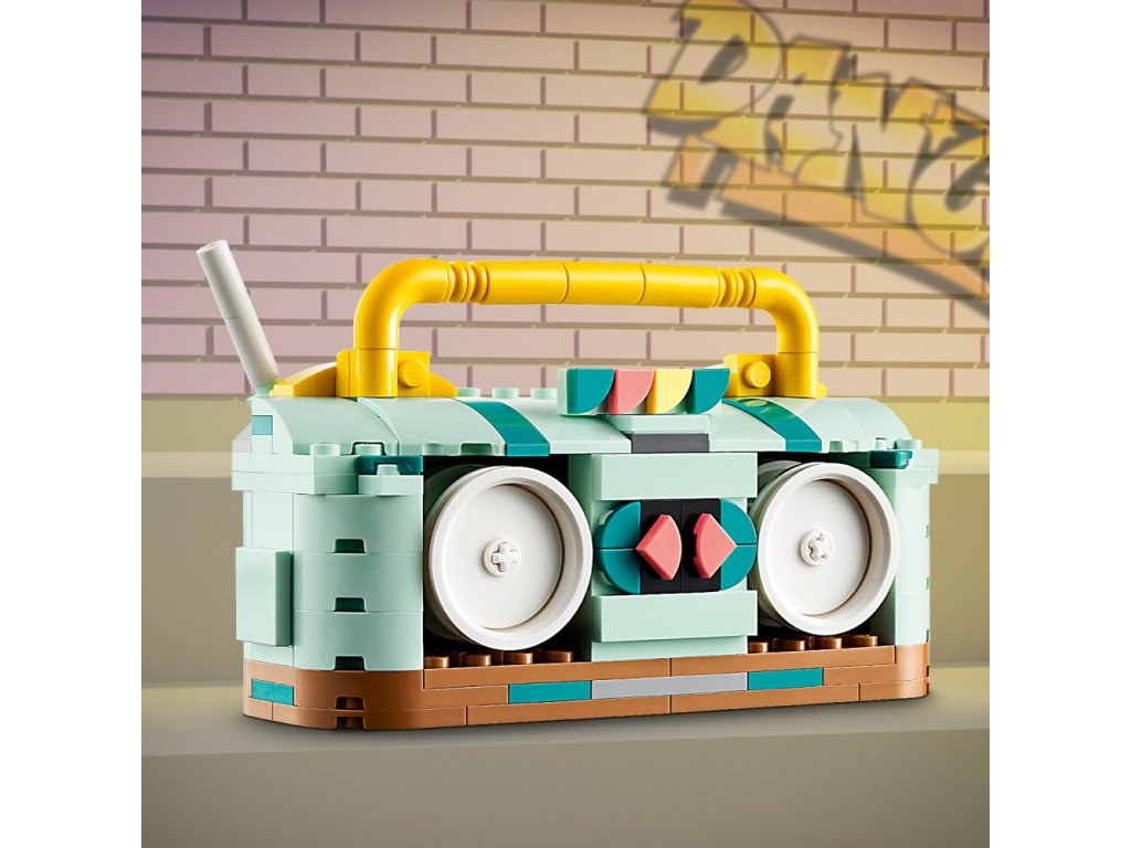 S touto stavebnicí LEGO® Creator 3 v 1 si děti postaví hned 3 různé modely ze stejné sady kostek a vychutnají si stavitelský a herní zážitek. Postaví si model kolečkové brusle, který pak přeskládají na miniaturní retro skateboard nebo na retro kazeťák s krátkou anténou. Všechny 3 modely představují poutavé výstavní kousky, které si děti po hraní hrdě vystaví v pokojíčku.