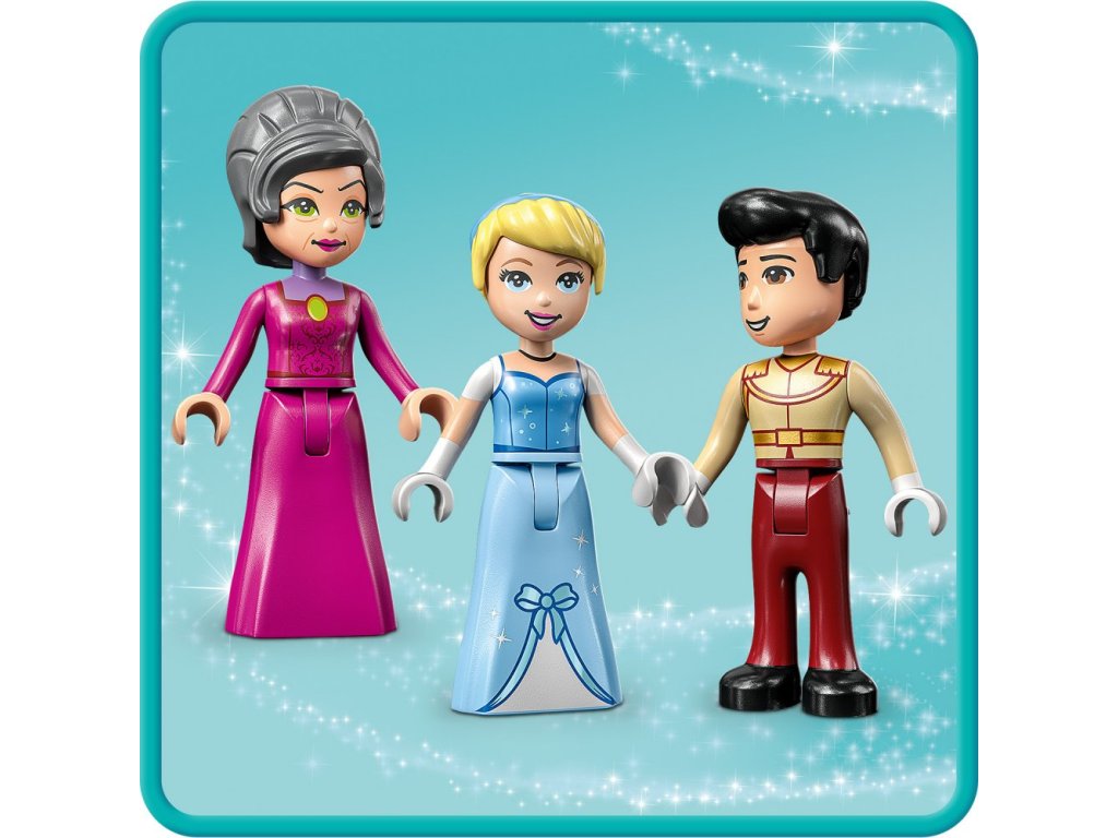 Tato stavebnice dětem umožní pustit se bez zbytečných průtahů do hraní s minipanenkami disneyovské princezny Popelky, krásného prince a Lady Tremainové. Dále jsou k dispozici figurky zvířat LEGO myšáka Guse a kocoura Lucifera. Jedná se o působivý dárek pro všechny fanoušky studia Disney.