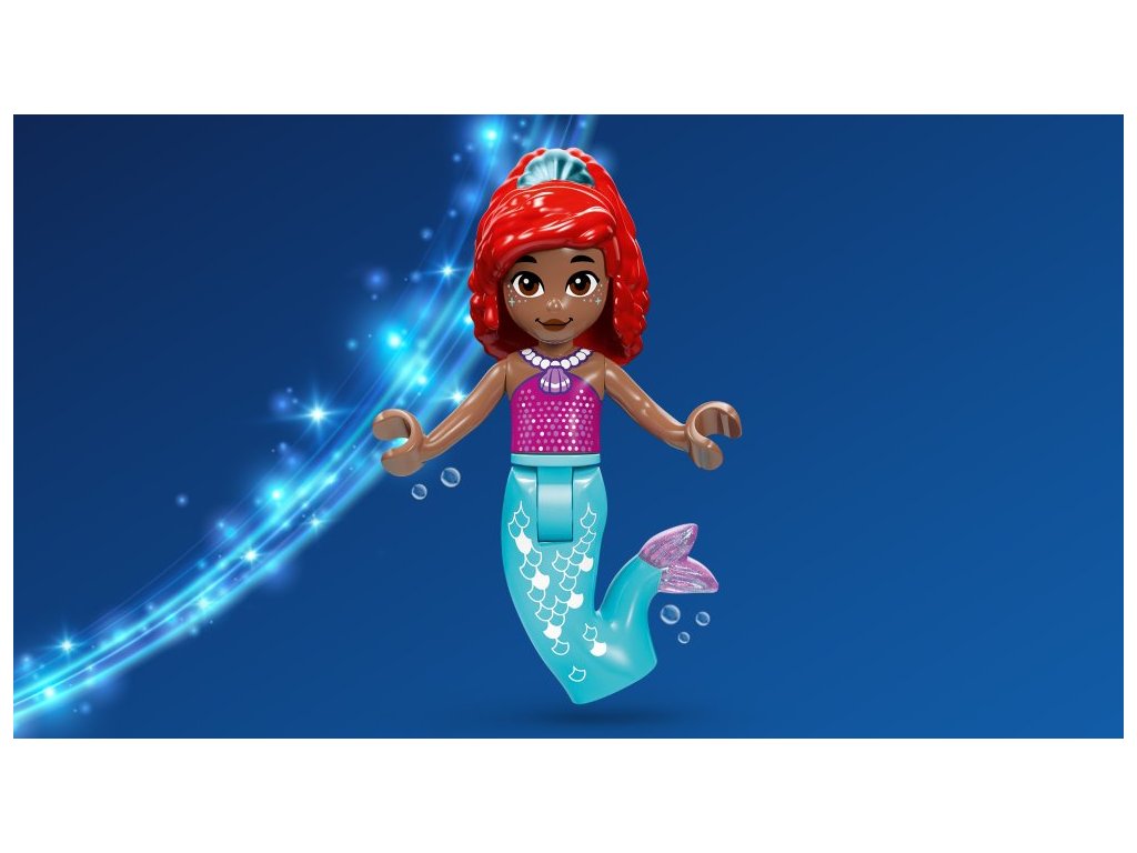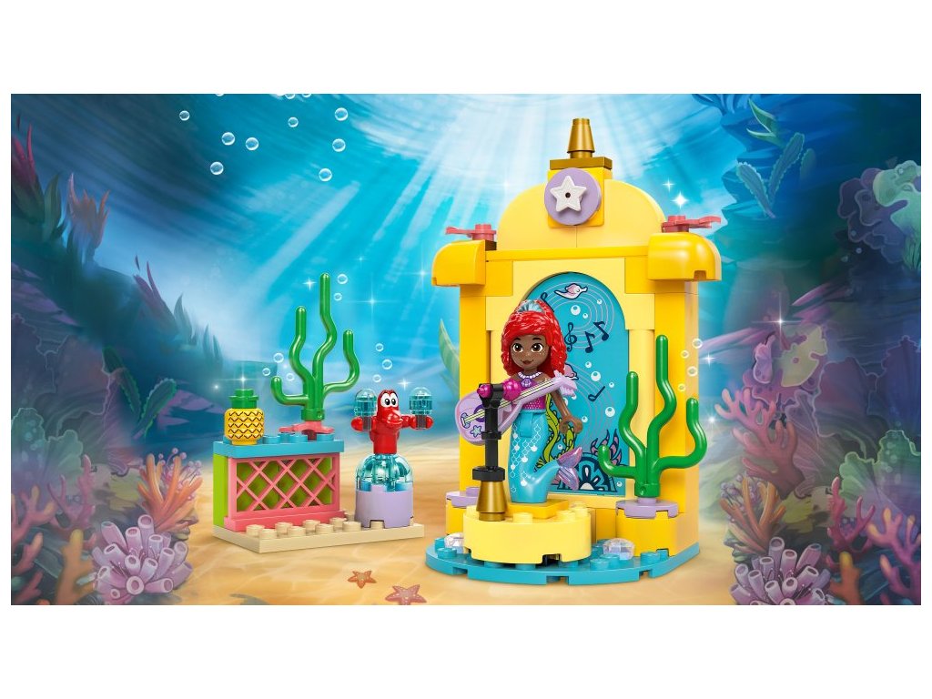 - Herní stavebnice – Součástí této sady je hudební pódium inspirované televizním seriálem Ariel od Disney Junior, minipanenka LEGO® ? Disney Ariel a figurka zvířátka LEGO ? Disney Sebastiana