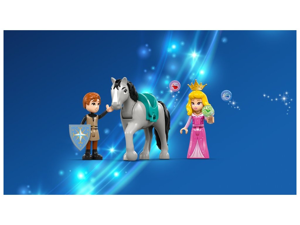 - Pohyblivý model – Pohyblivý drak se skládacími křídly, část budovy s mostem a věží,minipanenka LEGO® ? Disney Šípková Růženka a princ Filip a figurka LEGO ? Disney koně