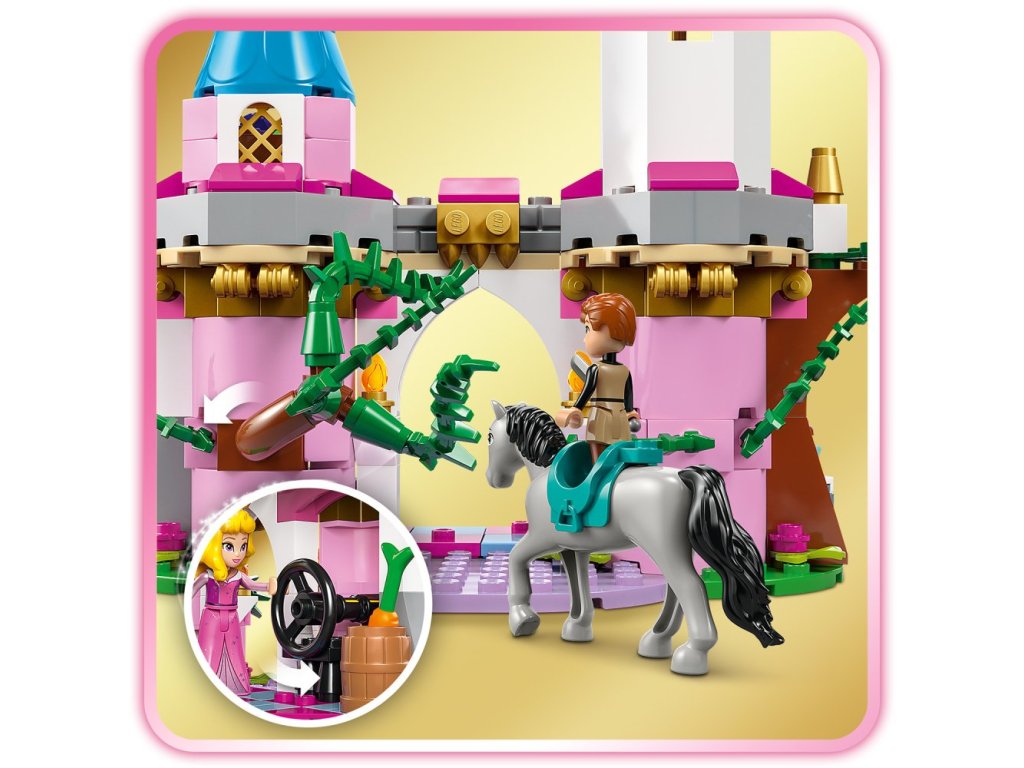 - Zábavná stavebnice pro děti – V modelu se sestavitelným mostem s věžičkami najdete postel Šípkové Růženky a otáčející se kolovrátek, který při otočení pohybuje popínavými rostlinami, brnění, hůlku a další inspirativní prvky