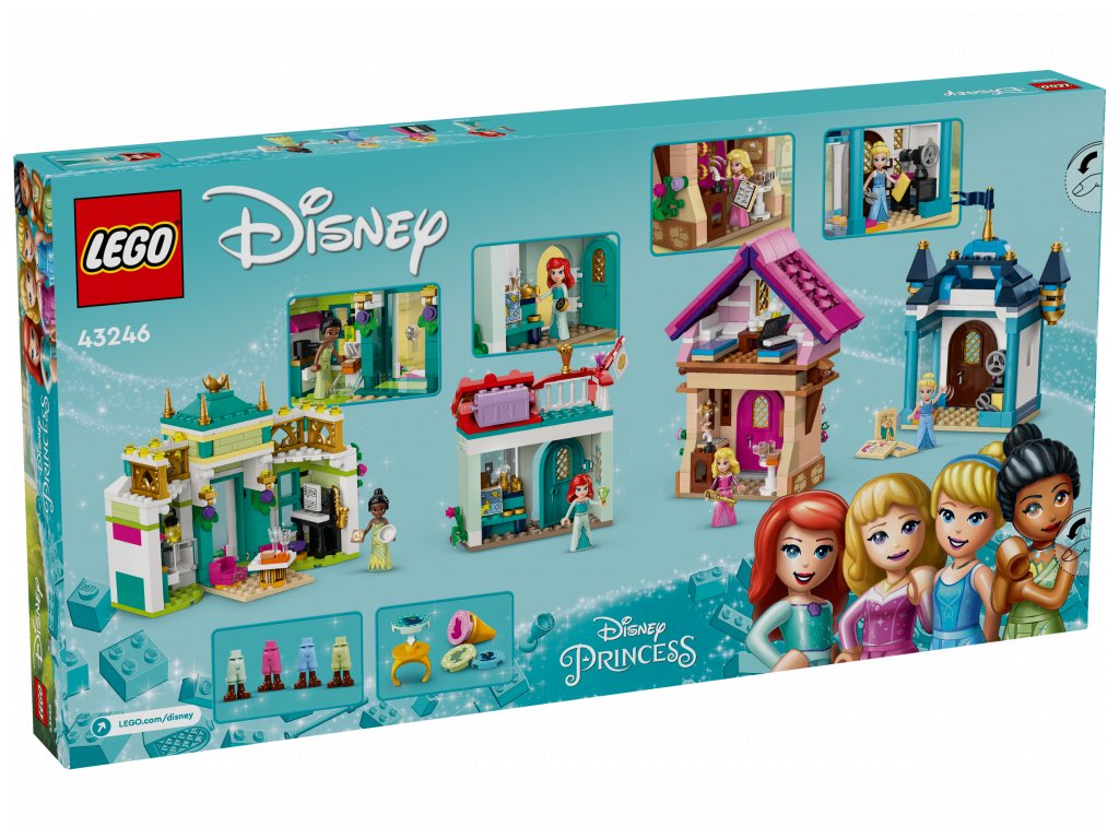 Propracovaná stavebnice LEGO® ? Disney Princess (43246) Disney princezna a její dobrodružství na trhu zaručeně nadchne a zabaví fanoušky Disney princezen a děti od 6 let. Najdete v ní 4 sestavitelné budovy. Na vrcholku jedné z nich je úložný prostor a malý model s květináčem, lavičkou a kašnou. Nechybí ani minifigurky LEGO® ? Disney Tiany, Šípkové Růženky, Popelky a Ariel a 2 sběratelské prsteny se 4 dekoracemi, které lze neustále obměňovat. Děti si navrhnou dobrodružství na trhu a pustí se do hraní nekonečných příběhů nebo si vymyslí nové příhody se spoustou inspirativních herních doplňků.