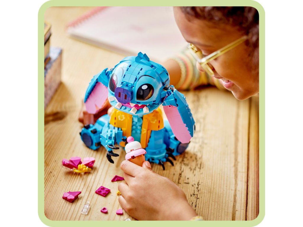 - Disneyho Stitch – Součástí této kreativní stavebnice LEGO® je výstavní model postavy z filmu Lilo a Stitch, kornoutová zmrzlina a květina, která postavu ozdobí