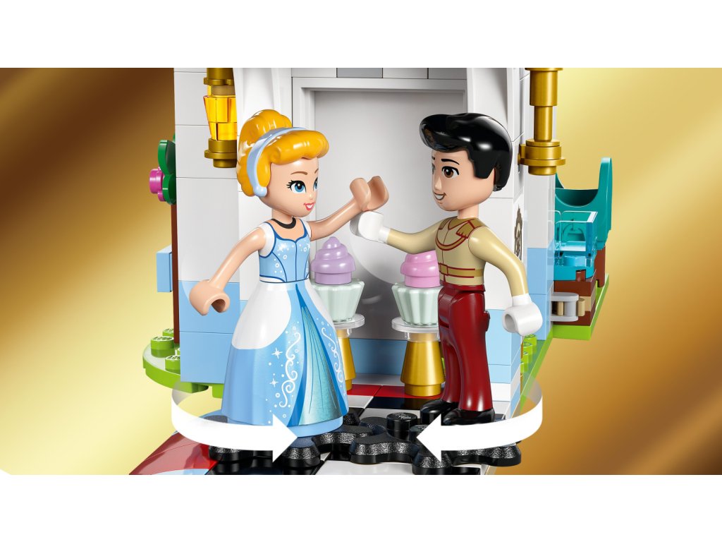 - Funkce fantasy stavebnice – Umístěte Disney princeznu Popelku a krásného prince na otočnou podlahu, aby mohli tančit, nebo vyměňte postroj koně za sedlo nebo brašnu