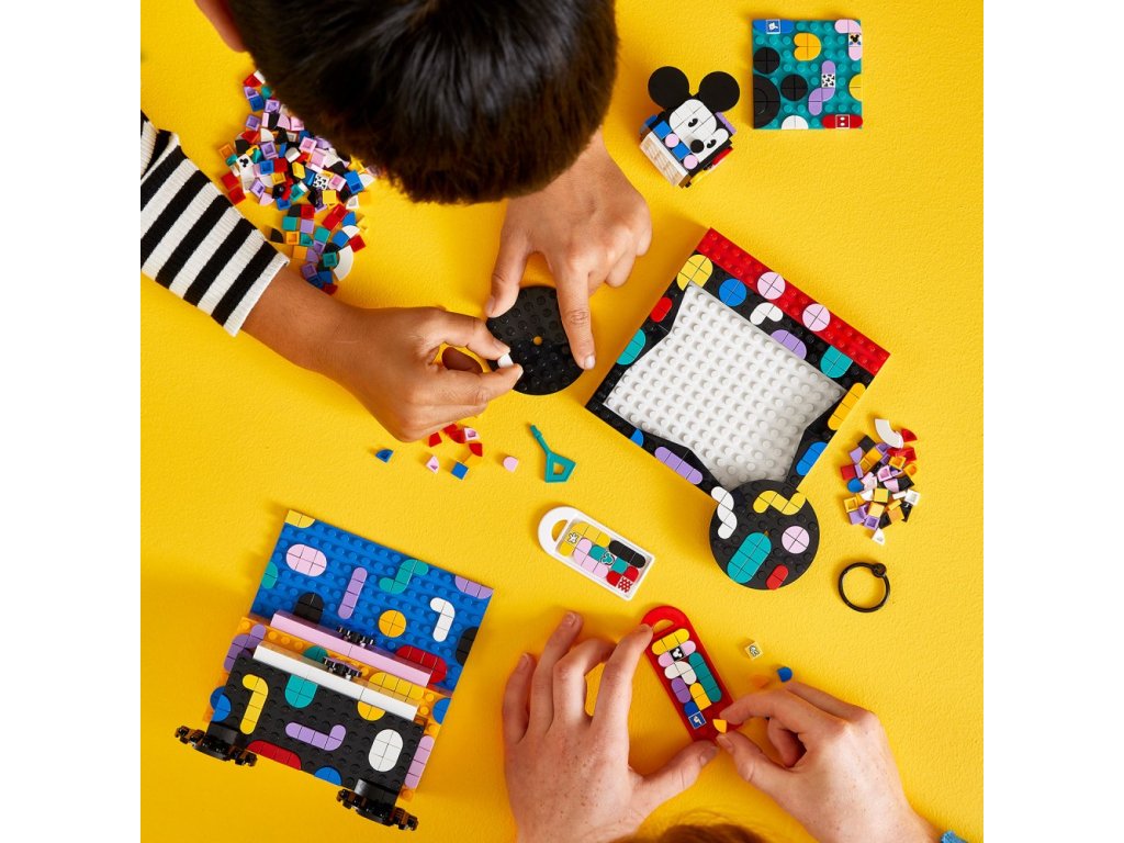 - Tvořte, zdobte, používejte – Ohromte všechny děti, které chtějí udávat trendy nebo zbožňují umění a tvoření školním boxíkem Myšák Mickey a Myška Minnie (41964) od LEGO® DOTS ? Disney. Kreativní zábava začíná hned po otevření krabice