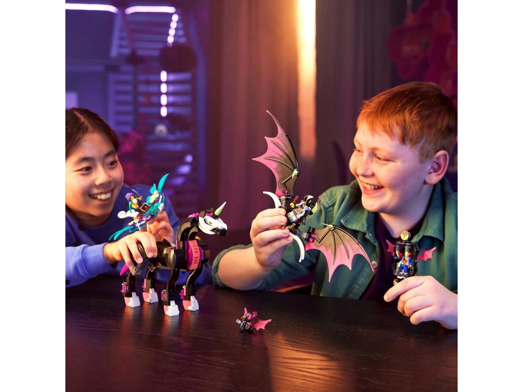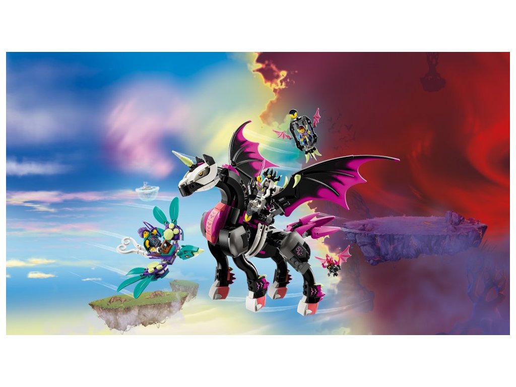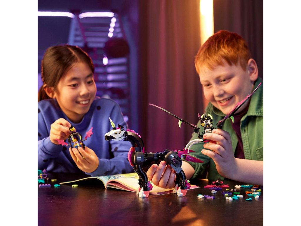 Tato stavebnice LEGO® DREAMZzz™ (71457) Létající kůň pegas vtáhne děti od 8 let přímo do akce ve Světě snů. Podobně jako v televizním seriálu se tu odehrává příběh Zoey a její záchranné mise za kamarádkou Novou, kterou unesla noční můra Susan na létajícím koni pegasovi. Návod na stavění vedený příběhem vtáhne děti do akce a podnítí jejich představivost při rozhodování o tom, co Zoey podnikne.