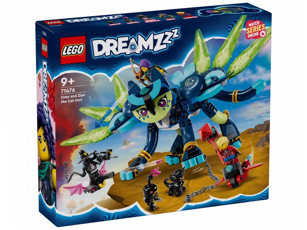 Zažehněte jiskru dětské představivosti se stavebnicí LEGO® DREAMZzz™ (71476) Zoey a kočkosova Zian. Stavebnice je inspirovaná televizním seriálem a je vhodná pro děti od 9 let, které se s ní vydají do Světa snů a pomohou hrdince Zoey zachránit Ziana před zlým Nočním lovcem.