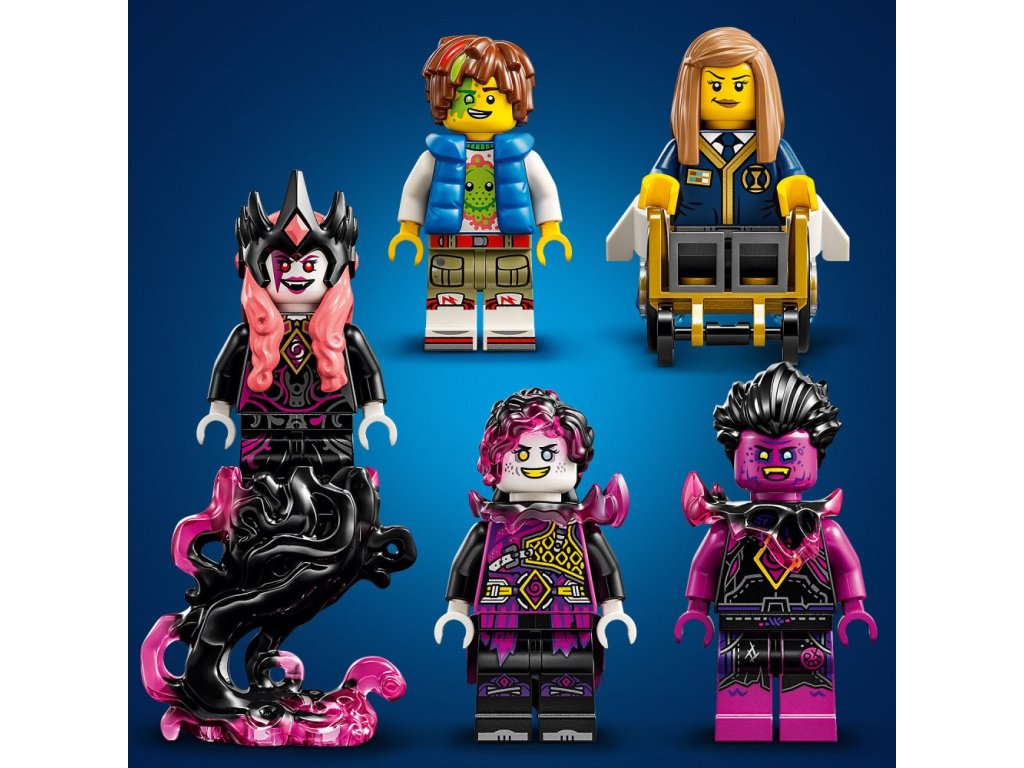 - 5 minifigurek LEGO® – Lovci snů Mateo a Astrid, zlotřilá Nikdyčarodějnice a zlí dvojníci Dizzy a Dogan přivádí stavebnici k životu