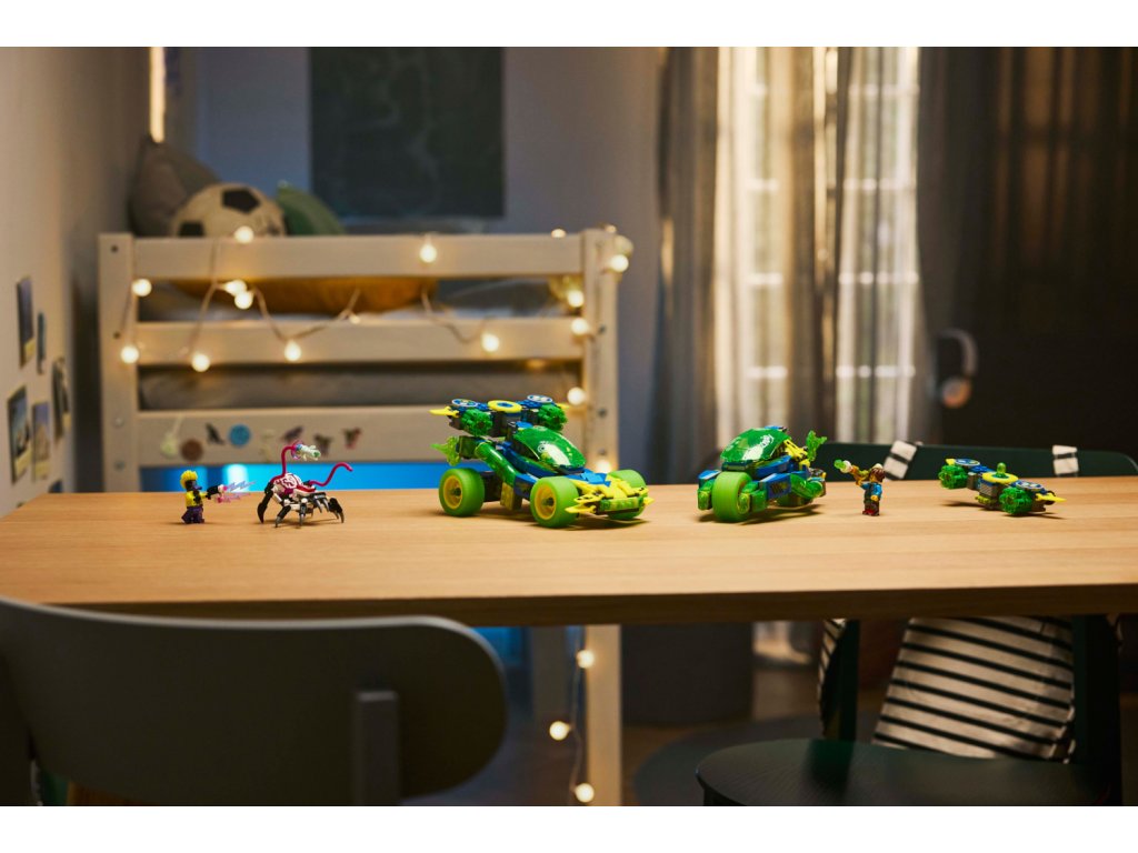 Na malé snílky čekají hned 2 možnosti sestavení této stavebnice. Užijí si spoustu zábavy při stavění základního modelu, který pak přestaví na terénní závodní auto nebo na rychlou motorku. Mezi parádní detaily patří odnímatelné čelní sklo, pojízdná kola, 2 vystřelovače šesti stře a odnímatelné moduly, které lze připojit k dalším stavebnicím z řady LEGO DREAMZzz 2025. Hrdina Mateo a padouch D-Shock vdechnou život celé akční stavebnici společně se Z-Flekem, Kybermozkovým pavoukem a Virtuálním stvořením ze Světa snů, kteří nastartují nápadité hraní.