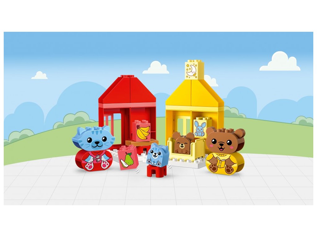 Stavebnice LEGO® DUPLO® (10414) Moje první každodenní aktivity: Jídlo a spánek dětem pomůže pochopit vlastní emoce. Tato zábavná hračka pro děti od 18 měsíců obsahuje hned 4 sympatické hračky zvířat.