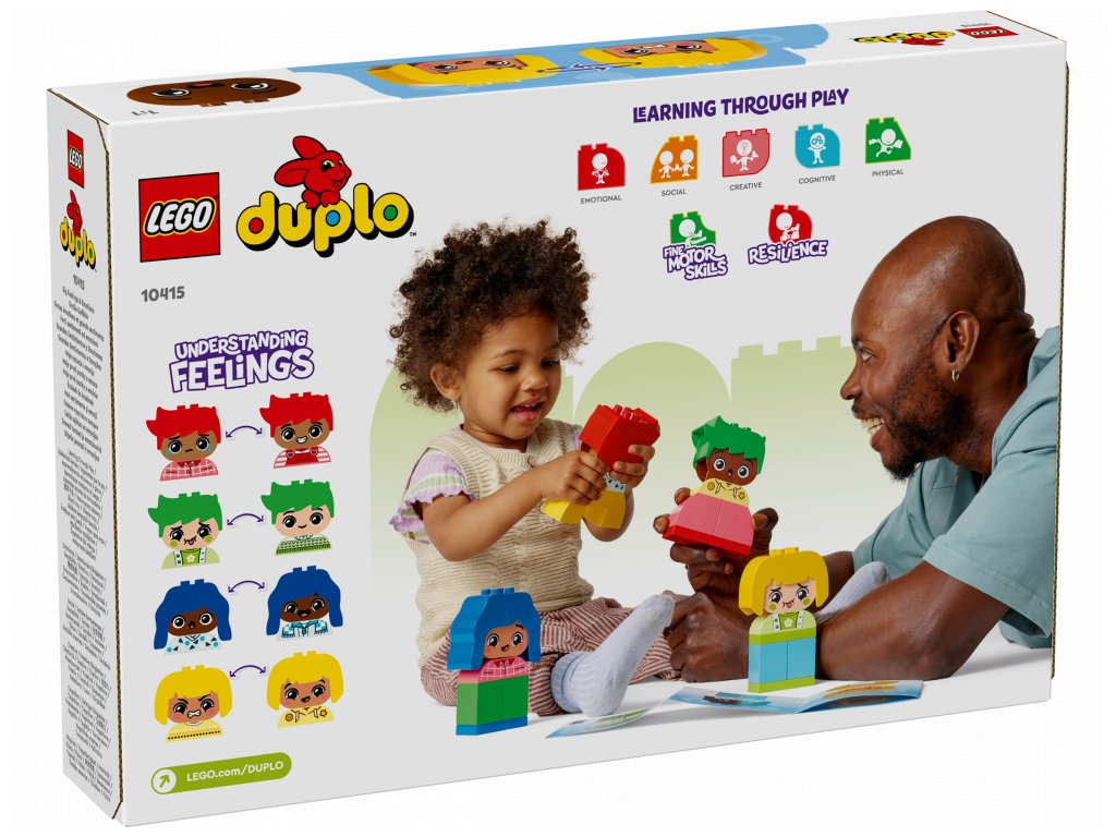 Kognitivní vzdělávací stavebnice LEGO® DUPLO® (10415) Moje první pocity a emoce dětem pomáhá porozumět vlastním pocitům. Součástí jsou 4 různorodé postavy, z nichž má každá dva výrazy, a sada tak dětem umožňuje ukázat, jak se právě cítí.