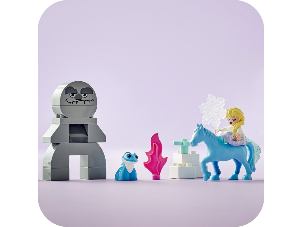 Malé děti prohloubí svou schopnost sebevyjádření při přehrávání scén z filmu nebo vymýšlení vlastních příběhů. Tato fantastická stavebnice přináší spoustu úchvatných detailů, které přímo vybízejí k vyprávění. Elsin sněžný krystal ve tmě svítí na cestu. Když se přibližuje sestavitelný zemní obr, objeví se Bruniho plamen. Postavy se ale skamarádí, když si uvědomí, že všechna stvoření pomáhají udržet přírodu v rovnováze. Minipanenka Elsy naskočí na figurku koně Nokka a ve víru podzimního listí se spolu přenesou k dalšímu dobrodružství.