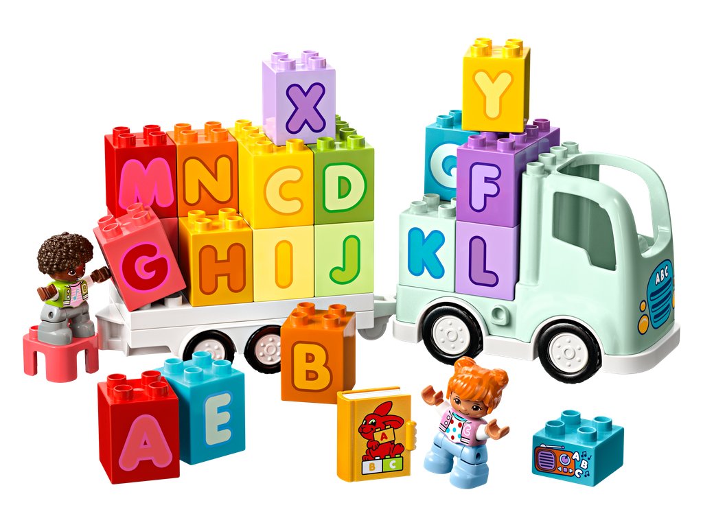 - Stavebnice, která děti naučí písmenka – Nasedněte do Náklaďáku s abecedou z řady LEGO® DUPLO® Město a připravte se na hraní plné zábavného učení abecedy pro malé stavitele od 2 let