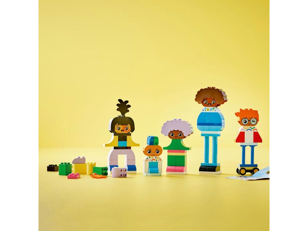 Tato přizpůsobitelná stavebnice se skládá ze 71 kostek a dílků, včetně 5 paruk a 1 podvozku s kolečky, ze kterých si děti poskládají 5 postaviček. Sada rozproudí dětskou fantazii a malí stavitelé z kostek vytvoří spoustu různorodých přátelských postaviček s odlišnými tělíčky, nohama a vlasy. Součástí je navíc 10 kostek s různými tvářemi, s jejichž pomocí malí stavitelé vyjádří pocity svých postaviček a naučí se popisovat, co jejich výrazy znamenají. Sada je navíc skvělým podnětem ke konverzaci, při které si dospělí mohou se svými ratolestmi povídat o tom, že každý je úžasně jiný!