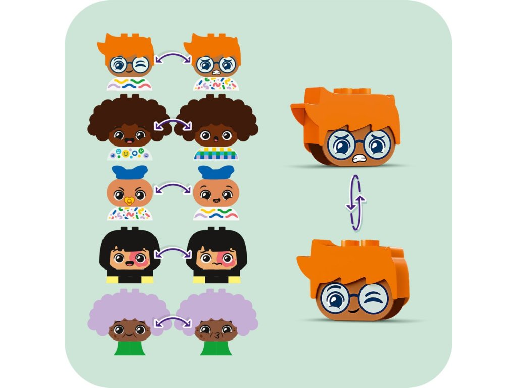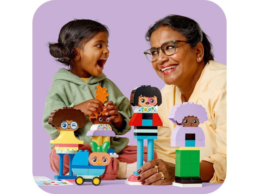 - Přizpůsobitelná hračka k rozvoji sociálních a emočních dovedností – Stavebnice LEGO® DUPLO® Město Sestavitelní lidé s velkými emocemi dětem od 3 let pomáhá porozumět vlastním emocím a tomu, jak se lidé cítí