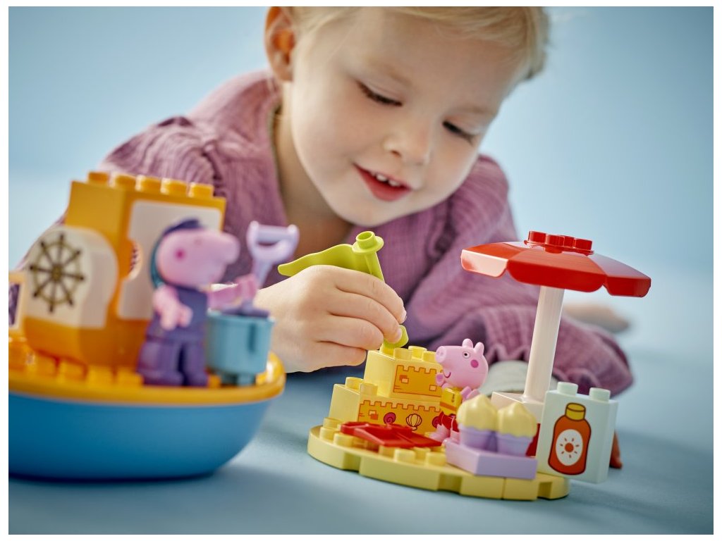 - Fantastická stavebnice s pláží a modelem loďky – Děti od 2 let se se stavebnicí LEGO® DUPLO® Prasátko Peppa a výlet na loďce vydají na dobrodružství na pláži inspirované televizním seriálem