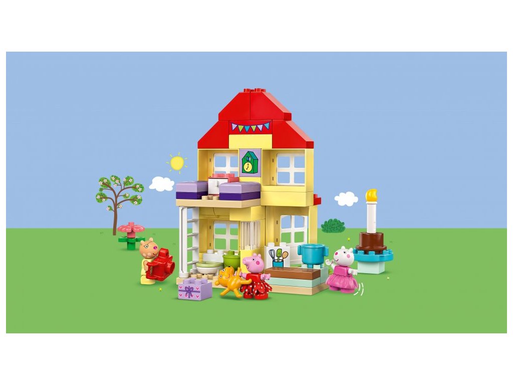 - Domeček prasátka Peppy pro kluky a holky od 2 let – Malé děti a fanoušci televizního seriálu jsou zváni na párty se stavebnicí LEGO® DUPLO® Prasátko Peppa a narozeninový dům