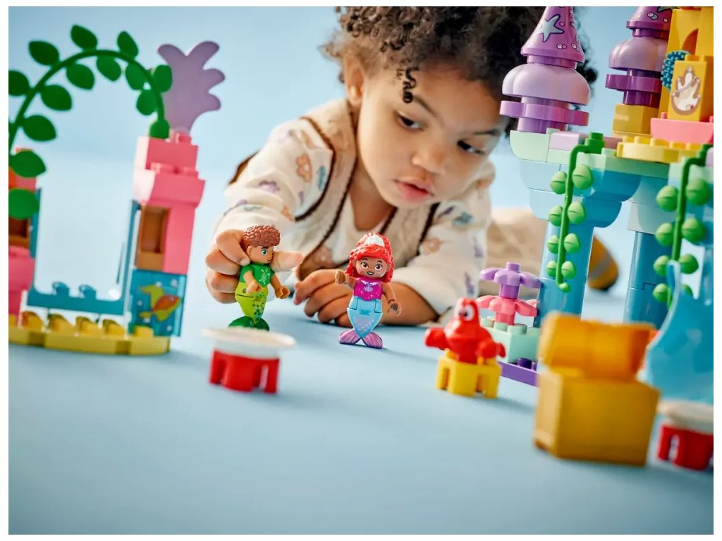 - Sestavitelný model domova Malé mořské víly Ariel – Malé děti si se stavebnicí LEGO® DUPLO® ? Disney Arielin kouzelný podmořský palác užijí spoustu zábavy
