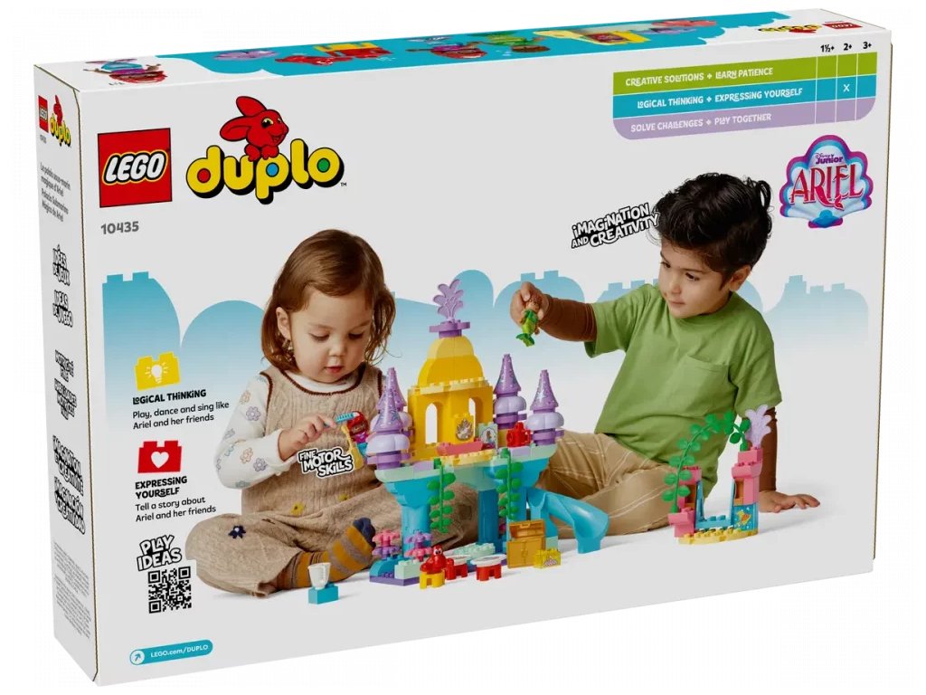 Ponořte se s fanoušky Disneyho Malé mořské víly do podmořského světa plného zábavy se stavebnicí LEGO® DUPLO® ? Disney (10435) Arielin kouzelný podmořský palác. Děti od 2 let využijí své logické myšlení a sebevyjádření při stavění scén z televizního seriálu Ariel z dílny Disney Junior.
