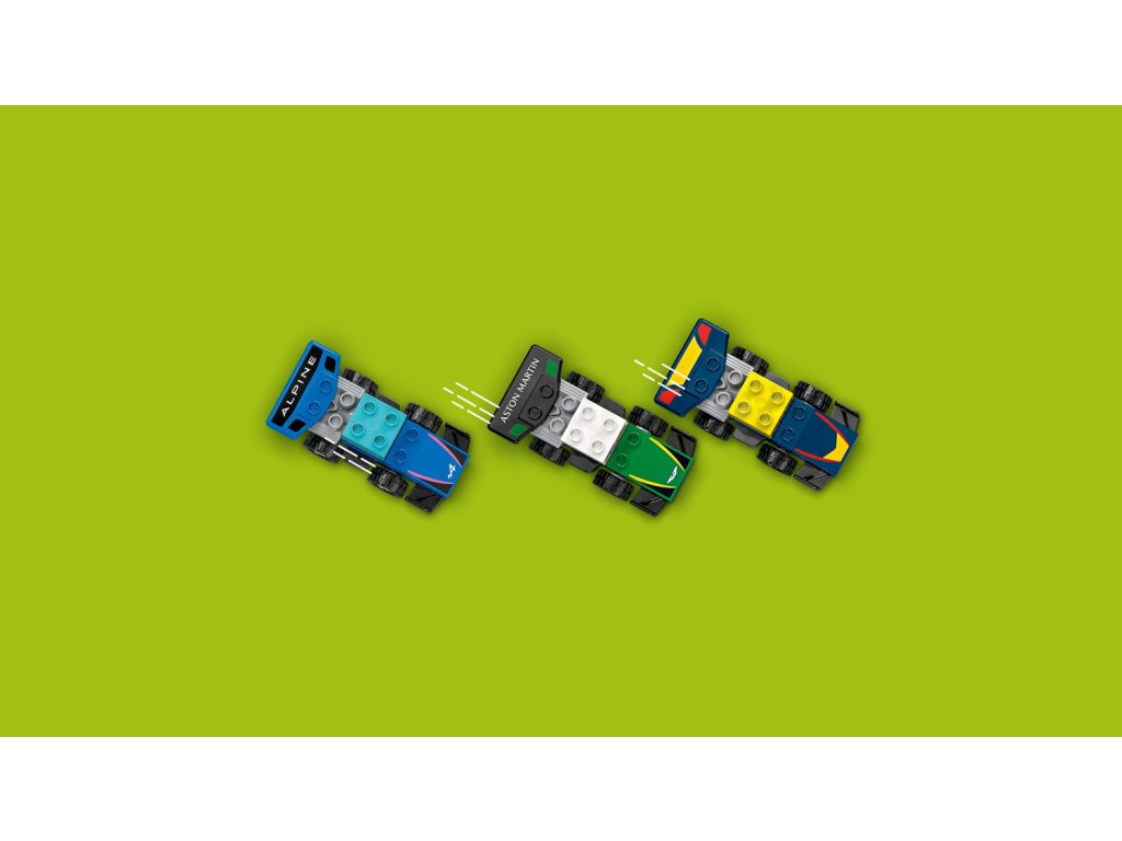 - Rychlejší F1® – Nenechte si ujít i další stavebnice LEGO® Formula 1® (prodávají se samostatně), které si můžete postavit, vystavit a závodit s nimi s celou rodinou