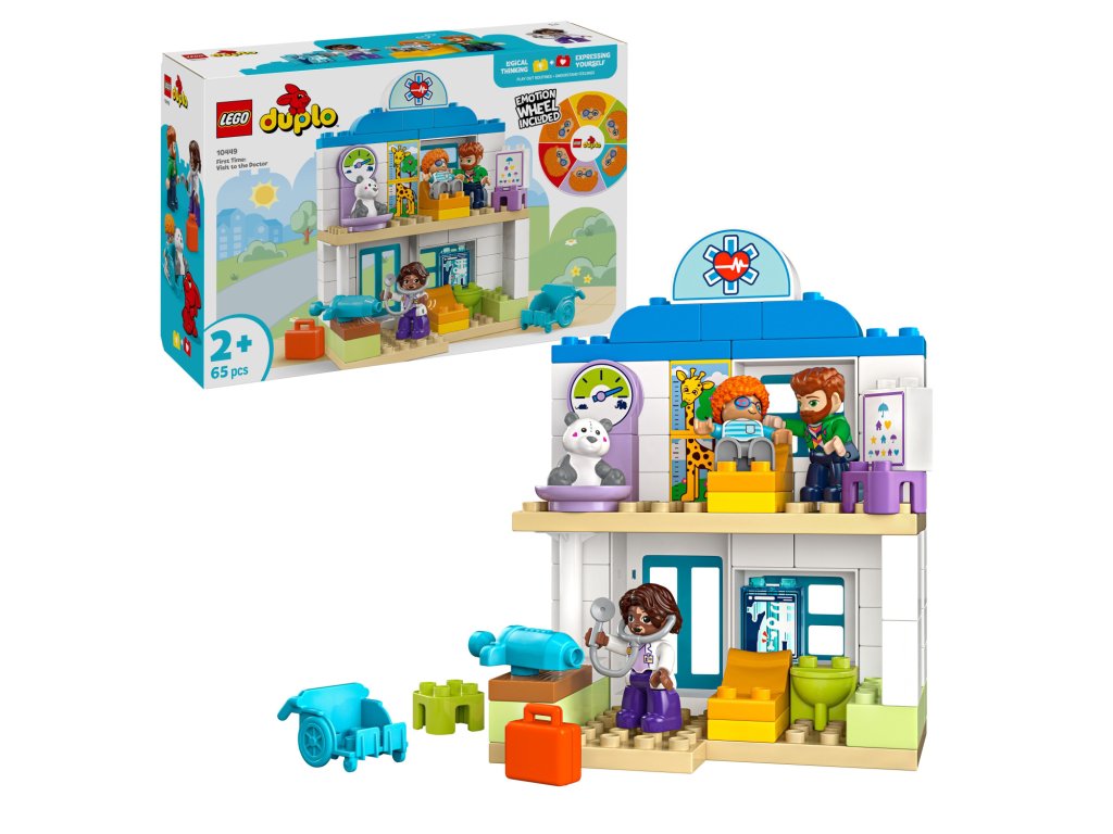 Děti od 2 let objeví své emoce se stavebnicí LEGO® DUPLO® Město (10449) První návštěva u lékaře. Tato stavebnice jim pomáhá procvičovat jemnou motoriku, hrát se na příběhy a cítit empatii k ostatním při hře na malého pacienta, který se chystá na zdravotní prohlídku.