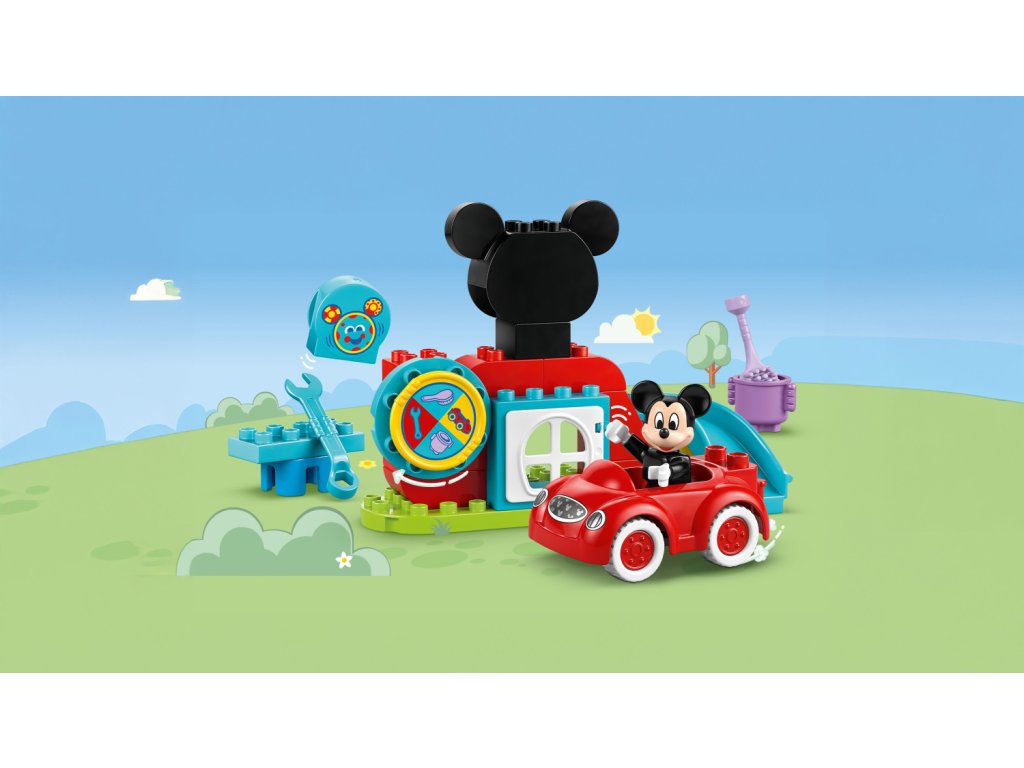 - Stavebnice s Myšákem Mickeym pro nejmenší – Stavebnice LEGO® DUPLO® ? Disney Mickeyho klubík a auto inspiruje malé děti k aktivitám a hraní na postavy