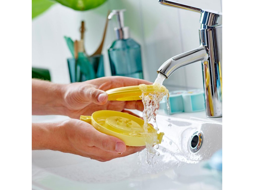 - Sestavitelná zvířátka – Ve stavebnici na vás čeká hroch, kachna a lední medvěd, a navíc také kyblík, mráček a 3 plovoucí kruhy, které lze otevřít pro snadné mytí